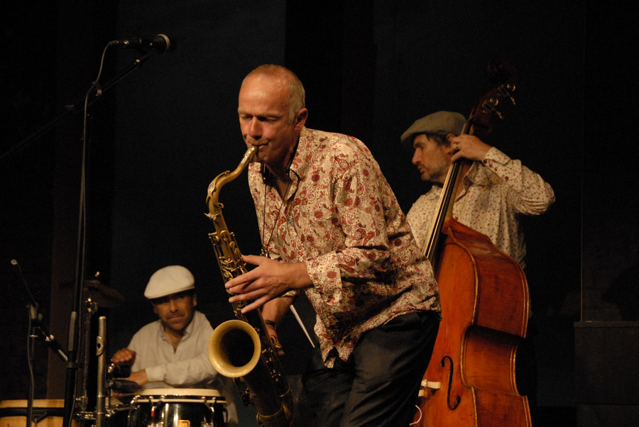 Gary Plumley (sax) with Jose Lito (congas) and Jon Thorne (bass)