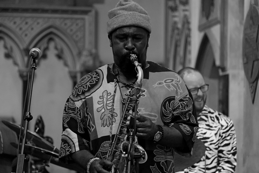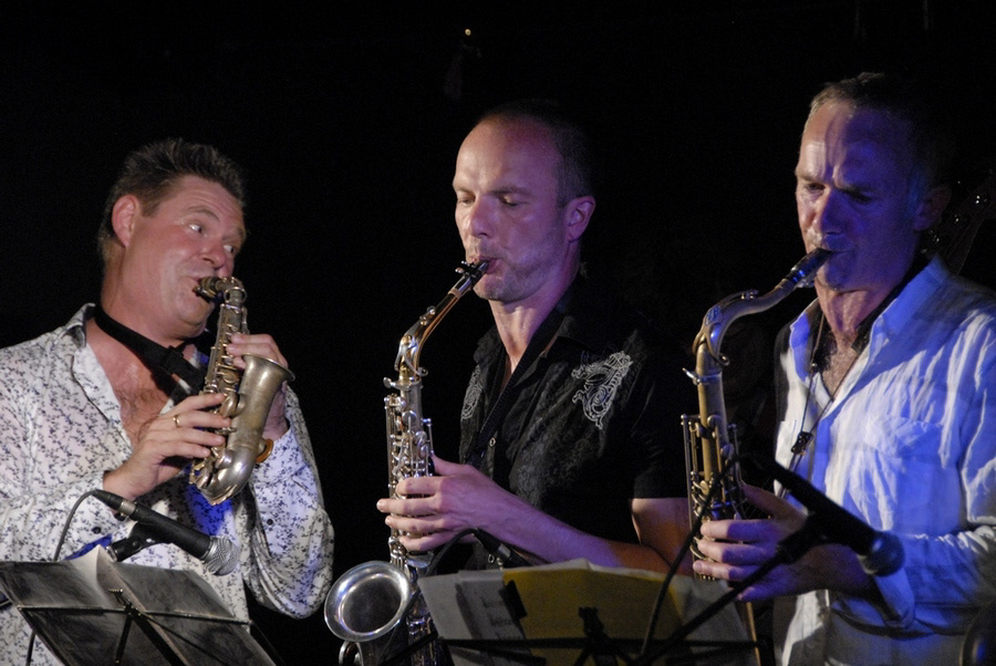 The AlleyCats L-R Martin Shaw, Derek Nash and Jose Lito (2018)